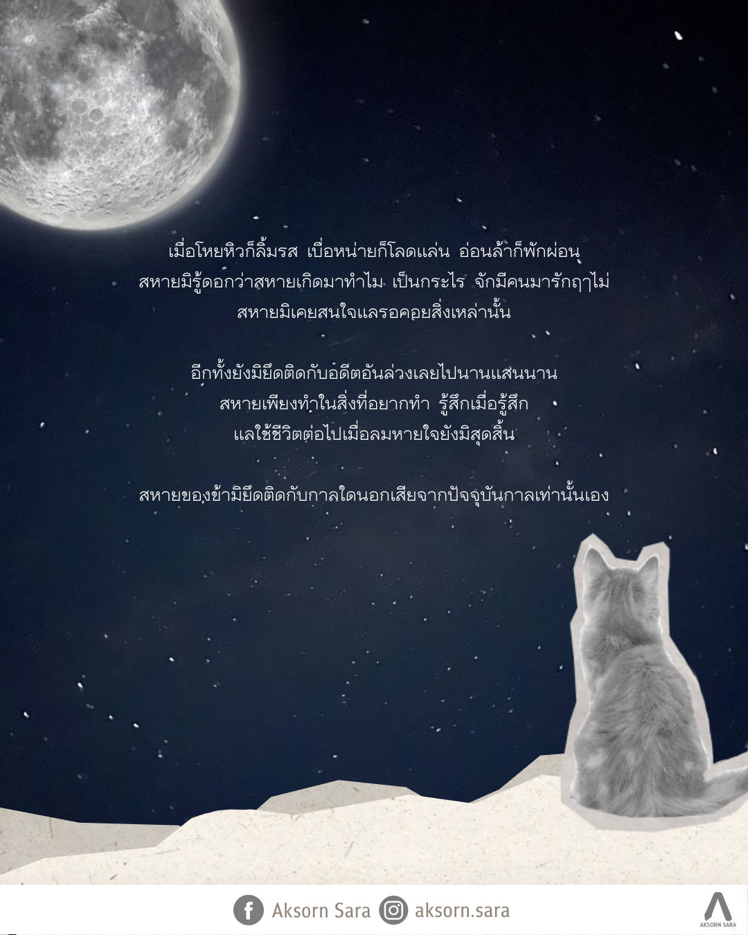 ข้าน้อยกับสหายแตกต่างกันยิ่งนัก หากแต่มีสิ่งหนึ่งที่ข้ากับสหายมีเหมือนกัน คือเราสองชอบยลตะวันแลจันทรา พร้อมทอดมองผืนนภากว้างใหญ่ มองข้ามผ่านป่าเขาลำเนาไพรแลขุนเขาลูกใหญ่อันไกลลิบ เป็นช่วงเวลาอันแสนสงบเงียบยิ่งนัก ข้าน้อยใคร่ครวญอยู่หลายครา ระหว่างที่ข้าน้อยเหม่อมองแสงแรกวันแลแหงนมองบุหลัน สหายของข้าจักคิดถึงอนาคตอันไกลโพ้นเฉกเช่นเดียวกันฤๅไม่