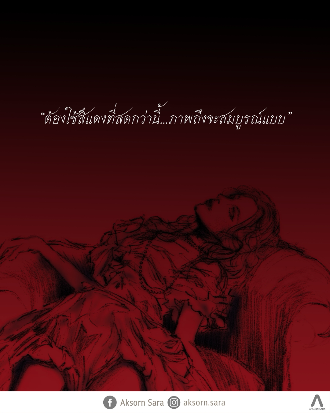 รอยคมเขี้ยวปรากฏบนลำคอของไอรีน ร่างของเธอแน่นิ่ง เฉกเช่นเดียวกับลมหายใจ นัยน์ตาไม่เหลือความเปล่งประกายอีกต่อไป ขณะเดียวกัน ภาพของหญิงสาวในชุดราตรีก็เสร็จสมบูรณ์ ชุดของเธอถูกแต่งแต้มด้วยสีแดงสด อย่างที่เขาอยากให้มันเป็น...